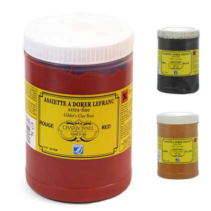 Il bolo per dorare Charbonnel si presenta sotto forma di una pasta d’argilla molto finemente macinata con dei cilindri di granito. Questa formula garantisce all’artista una doratura stabile e perfettamente omogenea, di alta qualità. Il bolo unito ad una soluzione tiepida a base di colla di coniglio è accuratamente stesa sull’oggetto da dorare. Disponibile in confezione da 1 litro ed in tre colori: rosso, giallo e nero.