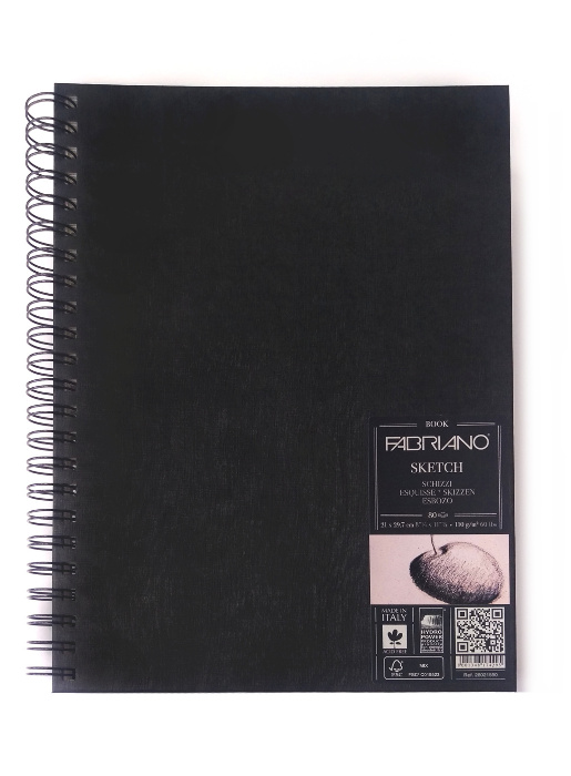 Libro da disegno con 60 fogli di carta da 160gr, acid free, certificata F.S.C. Proveniente da foreste gestite secondo rigorosi standard ambientali. Copertina rigida nera lavabile. Ideale per matita, inchiostro di china, pastello, penna, tempera. Disponibile nelle misure 14,8 x 21 cm (A5) , 21 x 29,7 cm (A4) , 25 x 35,3 cm (A3), rilegati sia su lato lungo che su lato corto.