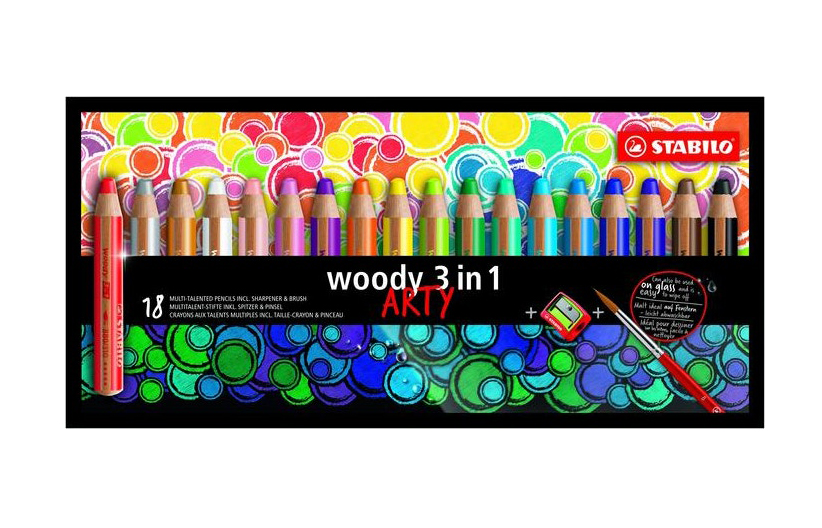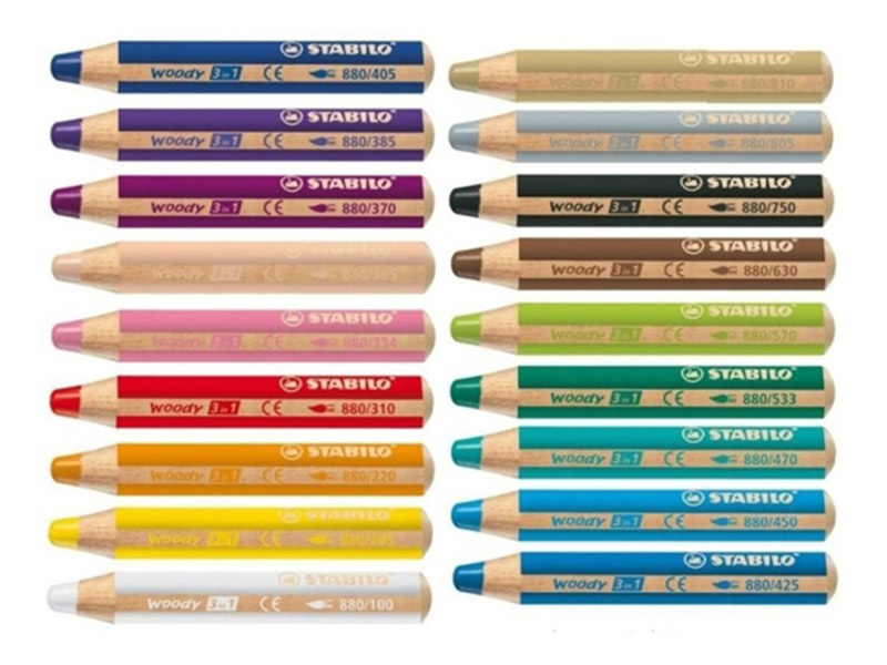 18 matite multifunzione, matita colorata, pastello a cera e acquerello. Mina spesa 10 mm, resiste anche alle pressioni più forti, ideale per colorare su grandi aeree e per quasi tutte le tecniche di pittura. Scrive anche su superfici quali legno, vetro e metallo. Grazie al suo particolare fusto corto e grosso è ideale per le mani dei bambini.