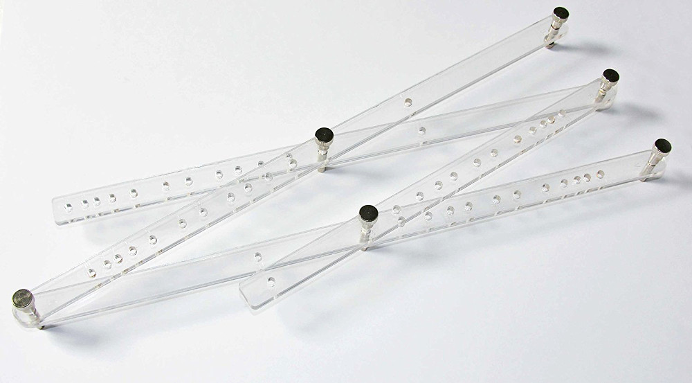 pantografo, serve per riprodurre in maniera grafica qualsiasi disegno in scala maggiore, naturale o ridotta. I valori di ingradimento o di riduzione sono incisi sulle aste e sono: