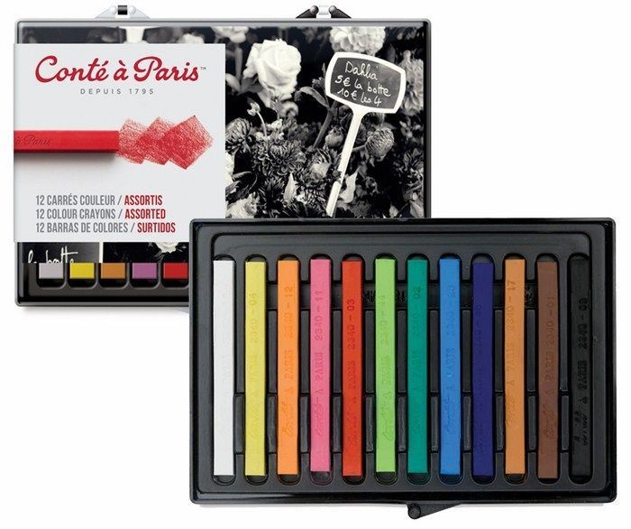 50 pastelli di alta qualità colorati, morbidi a carrè (o bastoncino) a sezione quadrata dalla lunghezza di 6,5 cm per 0,6 cm di spessore.