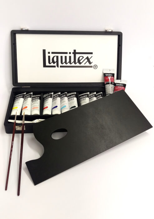 Astuccio in cartone con 5 tubi da 200 ml, 3 colori primari più bianco e nero. . La viscosità è spessa, trattiene le pennellate e i colpi di spatola. Tutti i colori sono miscibili tra loro, resa opaca senza riflessi indesiderati