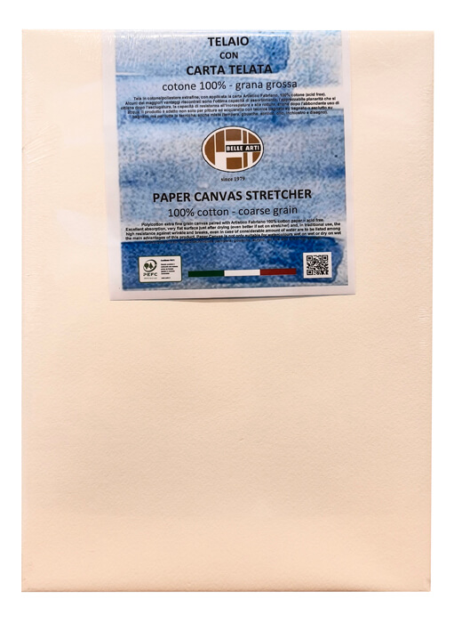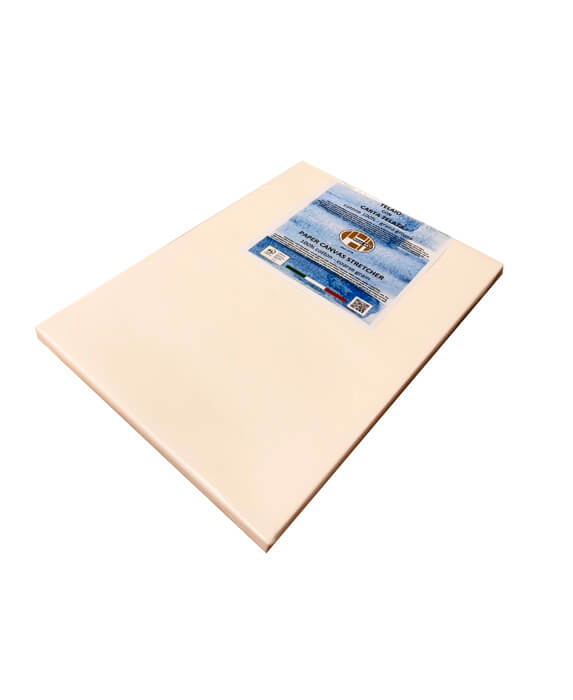 L’unione di tela e carta, oltre a permettere una maggiore facilità di utilizzo, favorisce il montaggio su telaio e va a migliorare le caratteristiche meccaniche e la resa della carta.